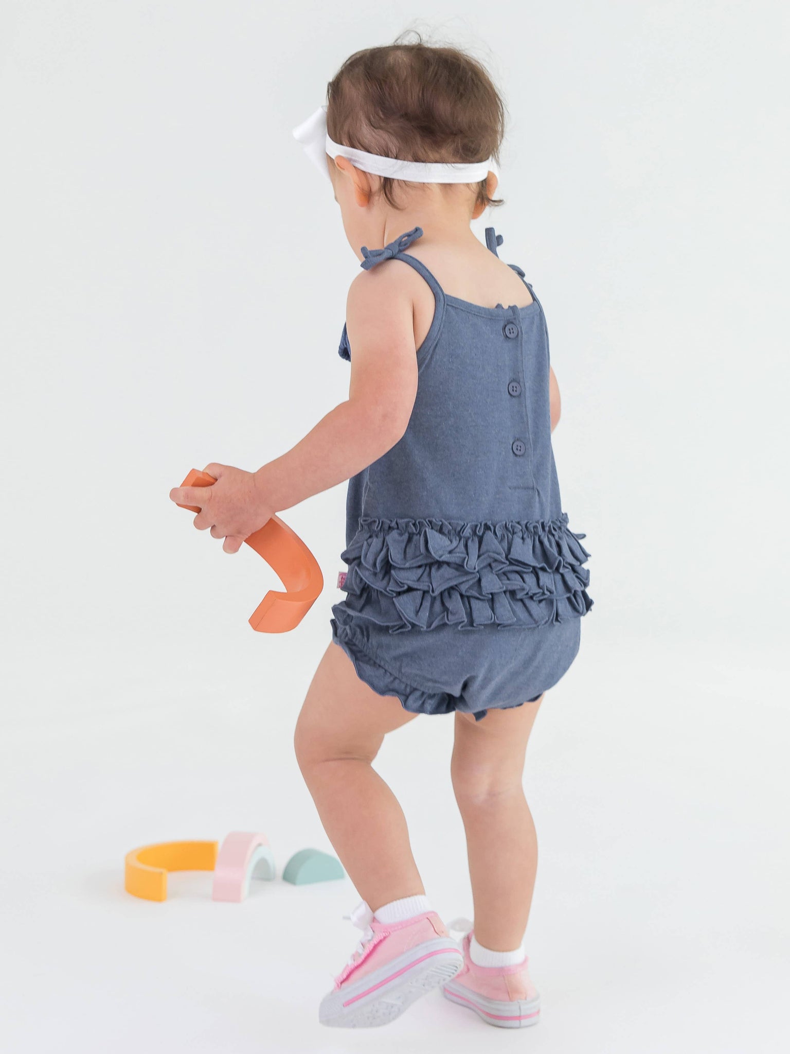 Pom Pom Bubble Romper - Blue