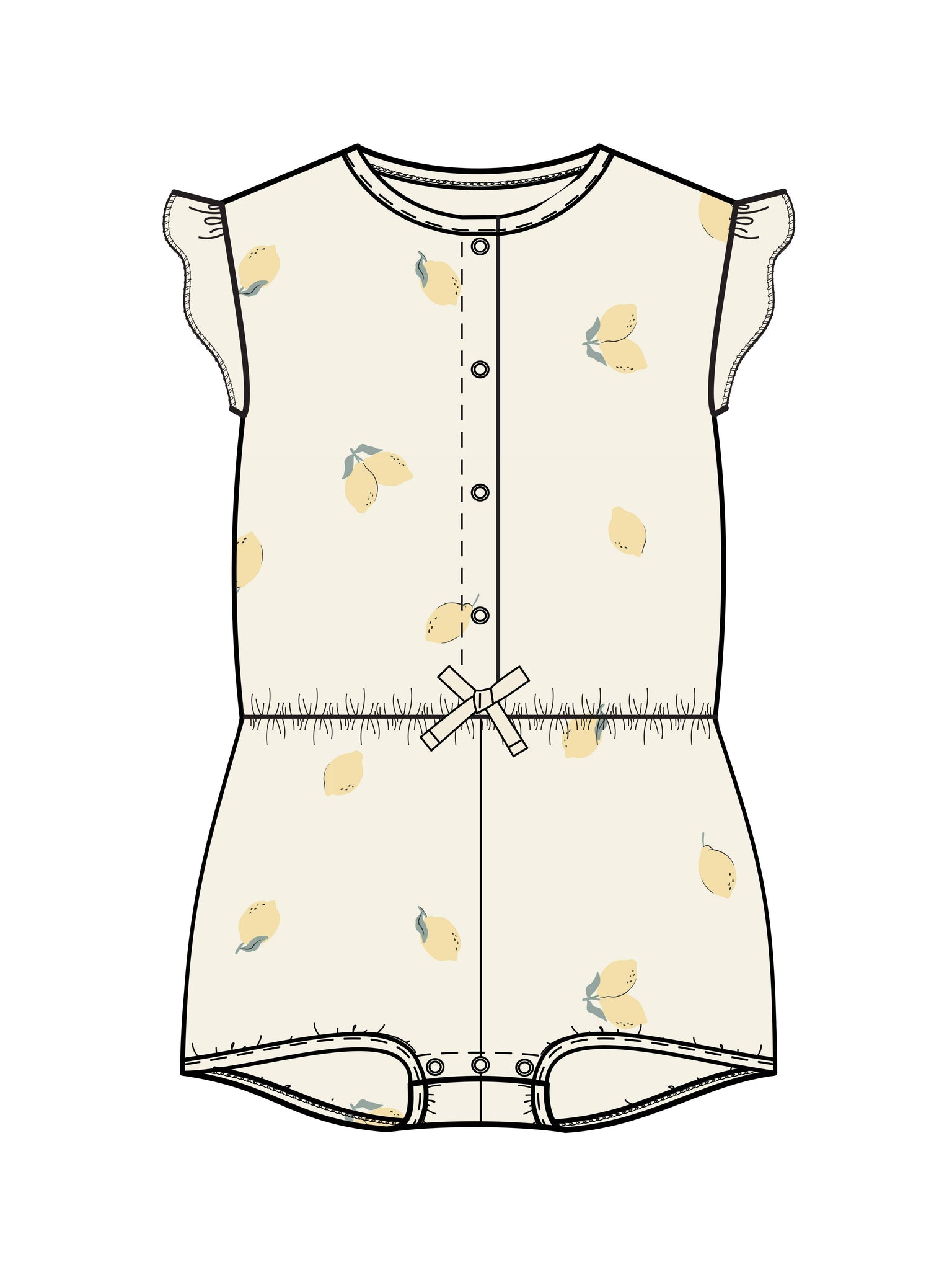With flutter sleeves, a diaper-friendly bottom, and adorable cinched waist, the Amelia Romper is perfect for every outdoor adventure. Made with 100% organic cotton, this piece is light and breathable for warmer months.