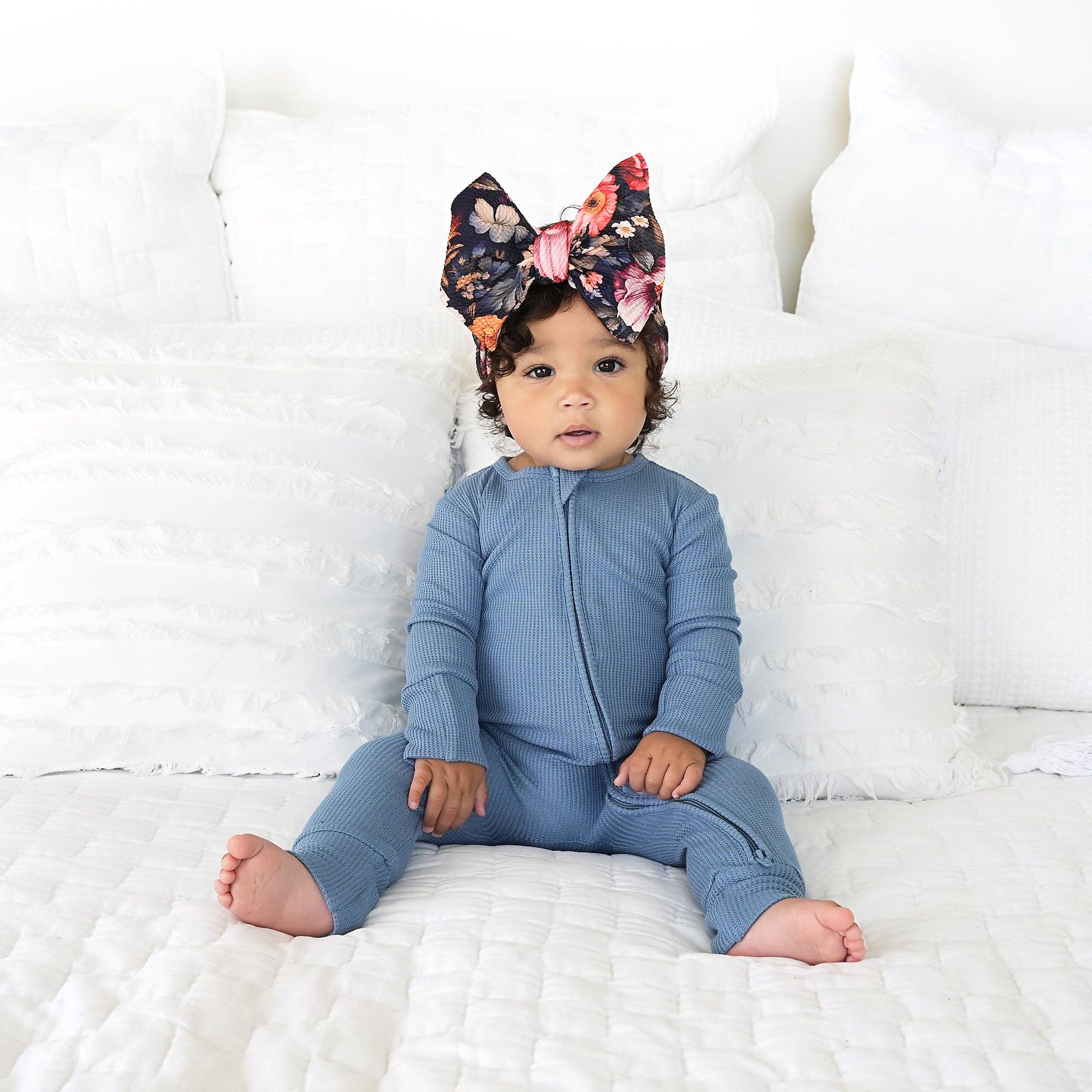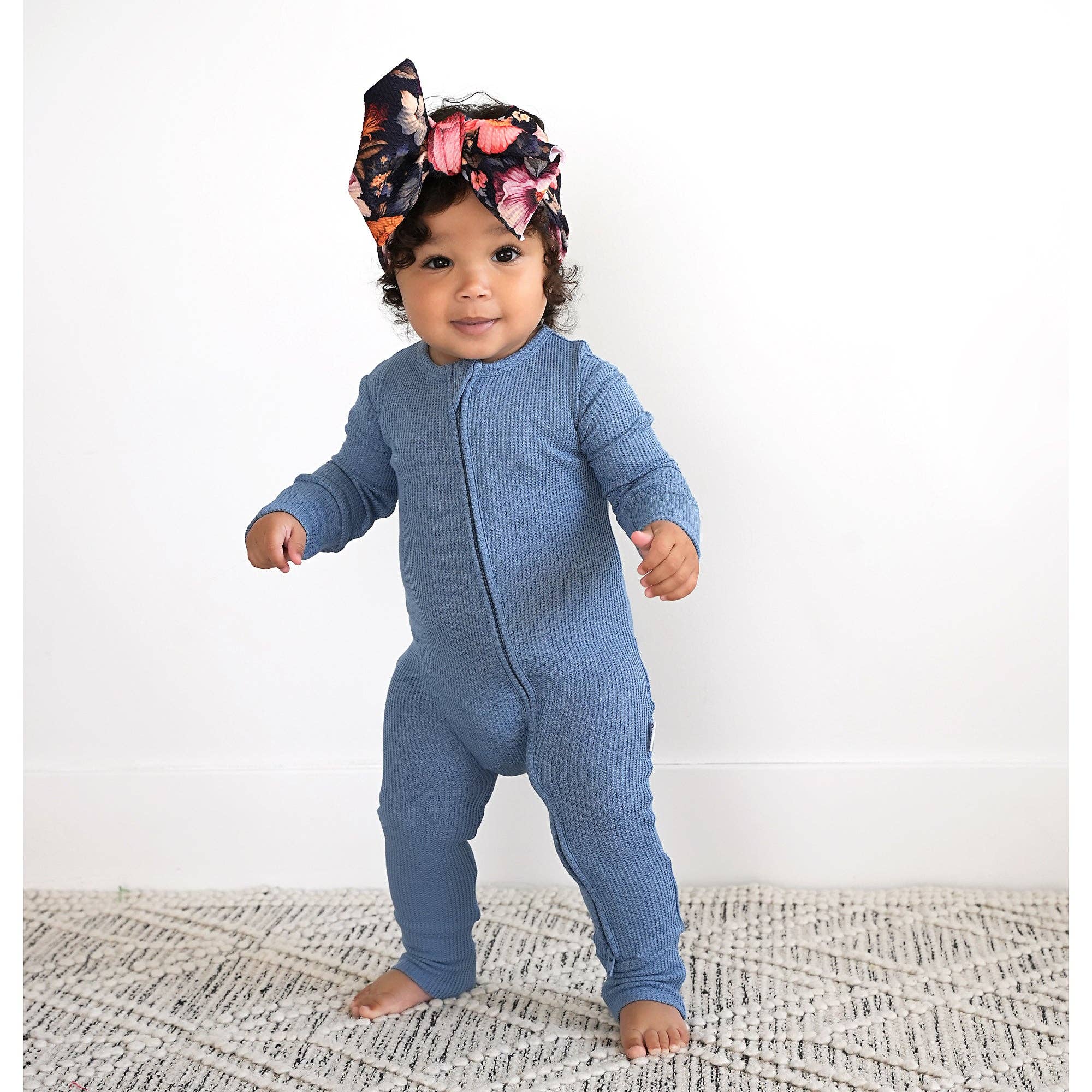 This zip one piece is super soft and comfortable. Featuring a zipper that runs from the top of the outfit to the ankle. Our favorite part about this outfit is that the zipper is 2 way! Making for super easy diaper changes without having to remove the whole outfit.