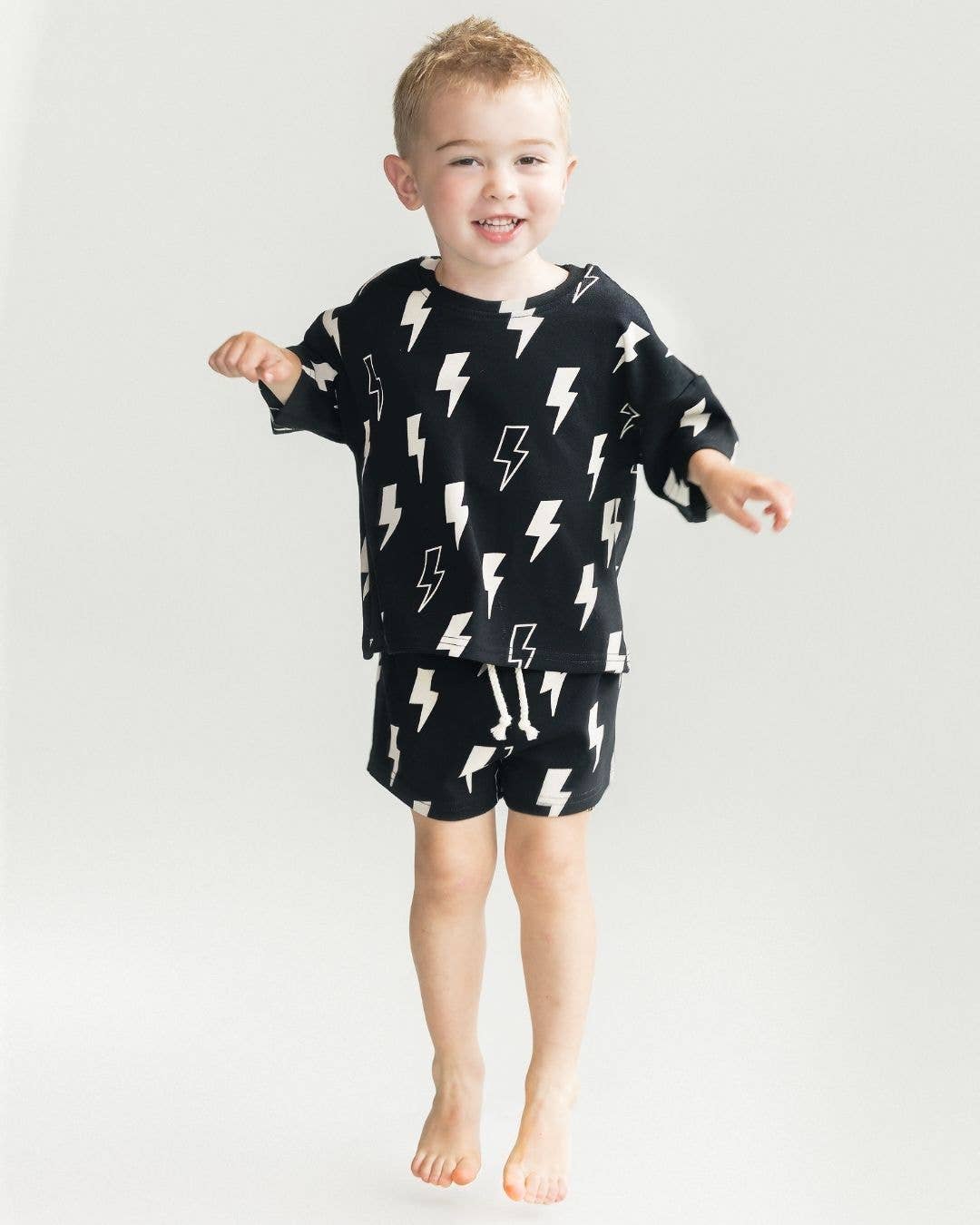 Lucky Panda Kids - Shorts Set - Black Bolts