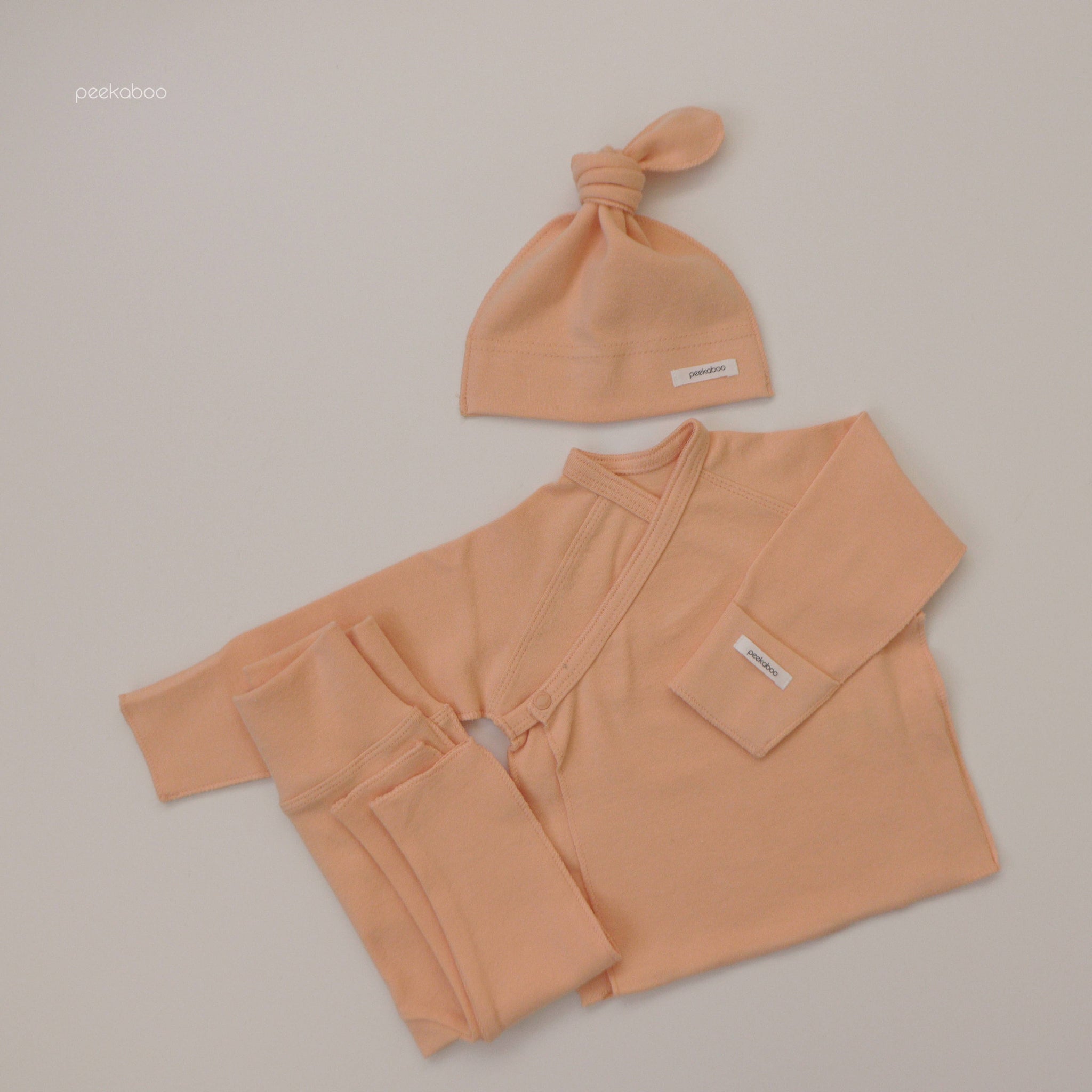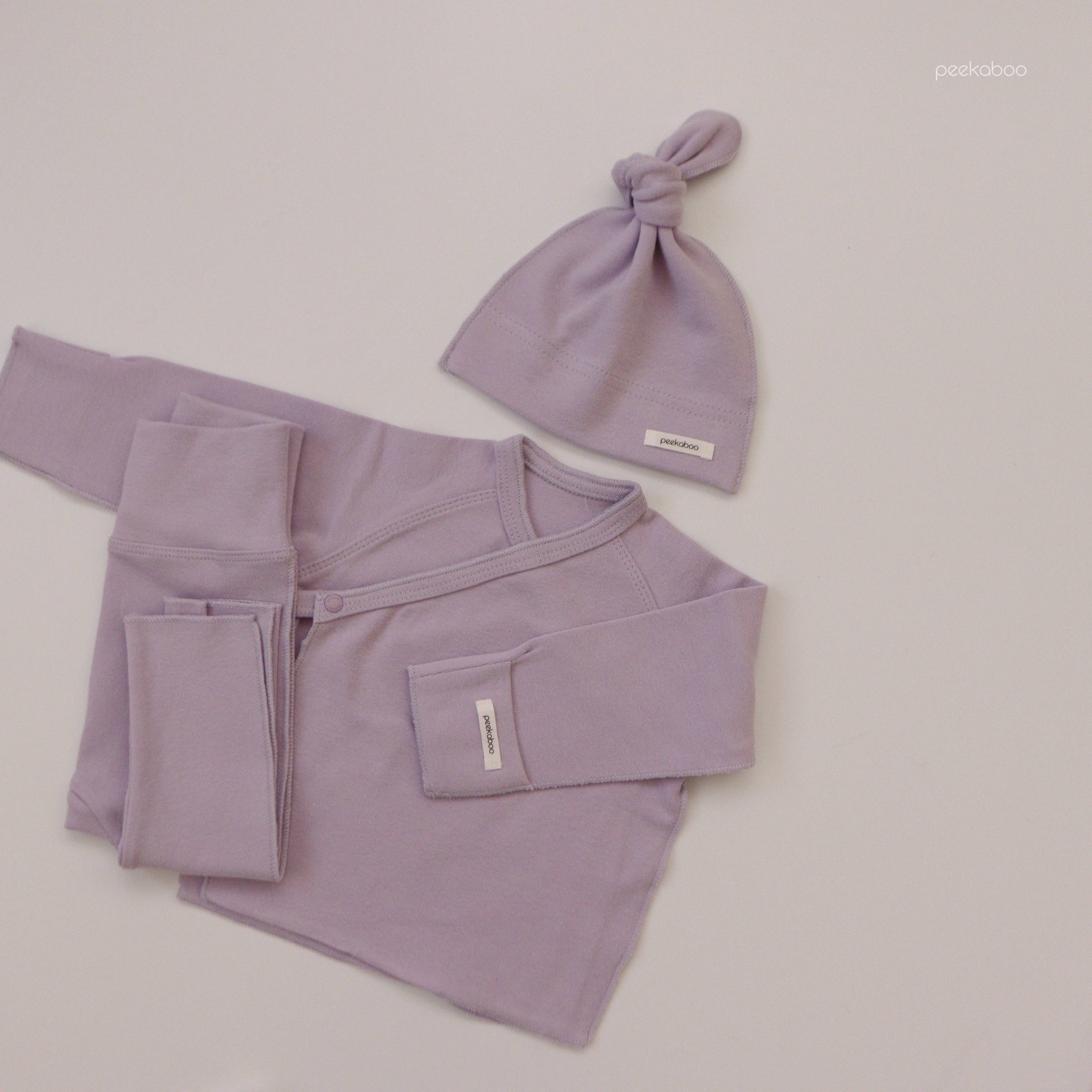 This spring pastel color baby pajama set made with soft cotton, and comes with baby hat.